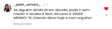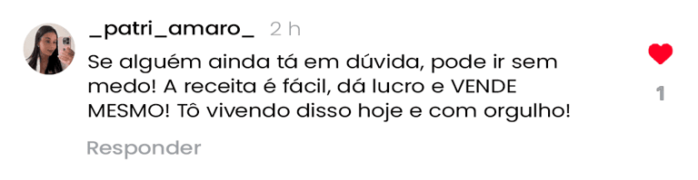 Você vai aprender como divulgar da forma certa, com os textos prontos, fotos, e até roteiro pra postar. A maioria das alunas vende ainda na primeira semana. E tem suporte e comunidade pra tirar dúvida e compartilhar ideias.